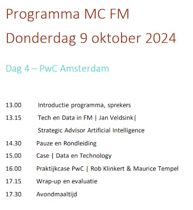 Op 9 oktober is de masterclass FM bij PwC.