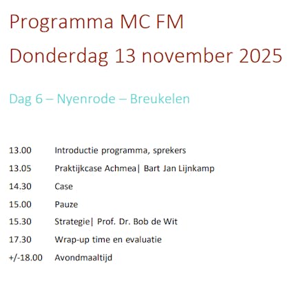 Op 13 november is de masterclass FM bij Nyenrode Business Universiteit Breukelen.
